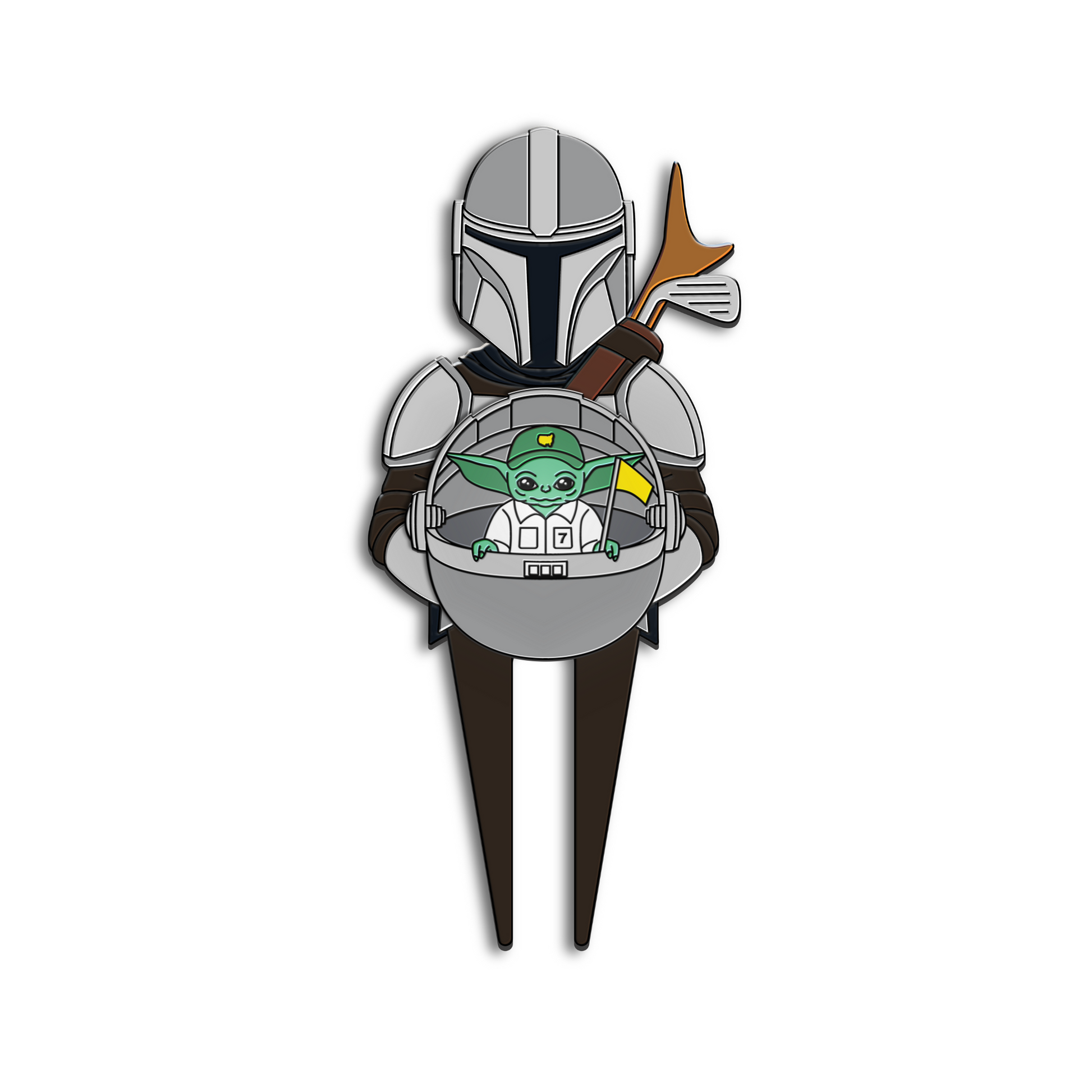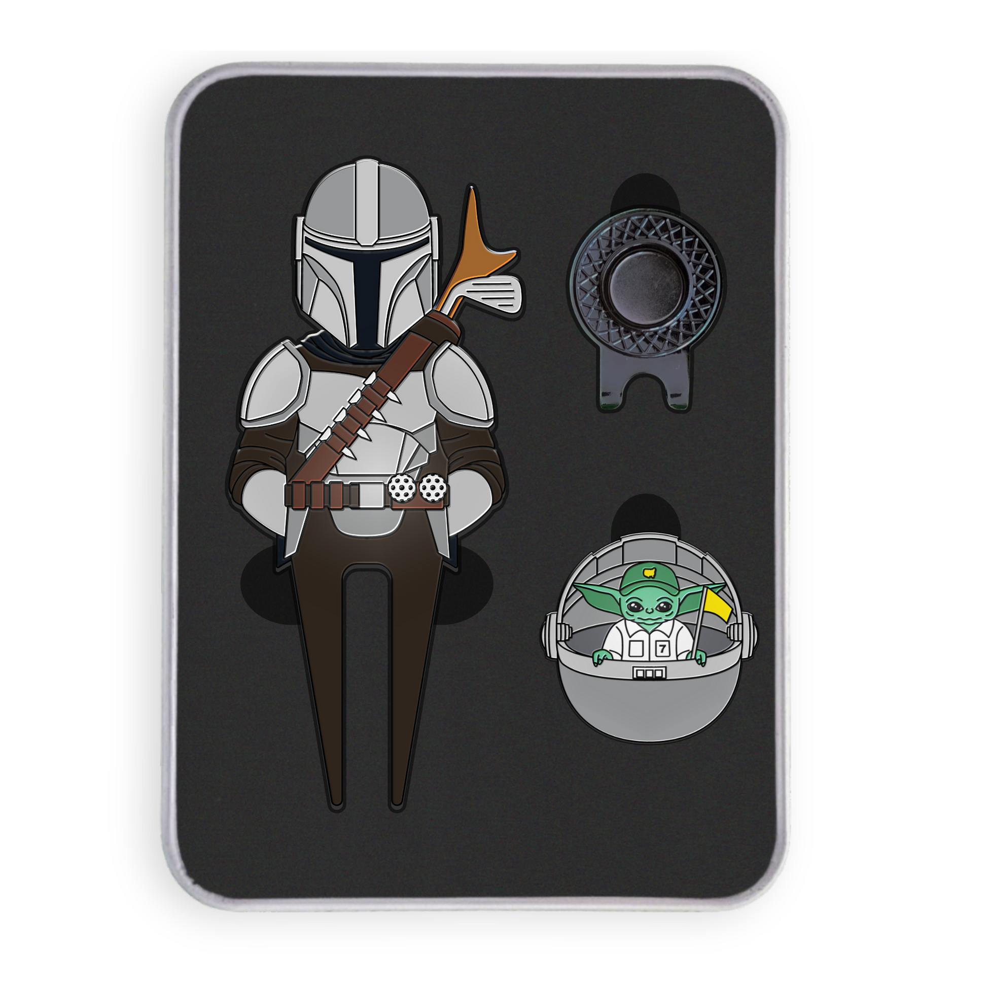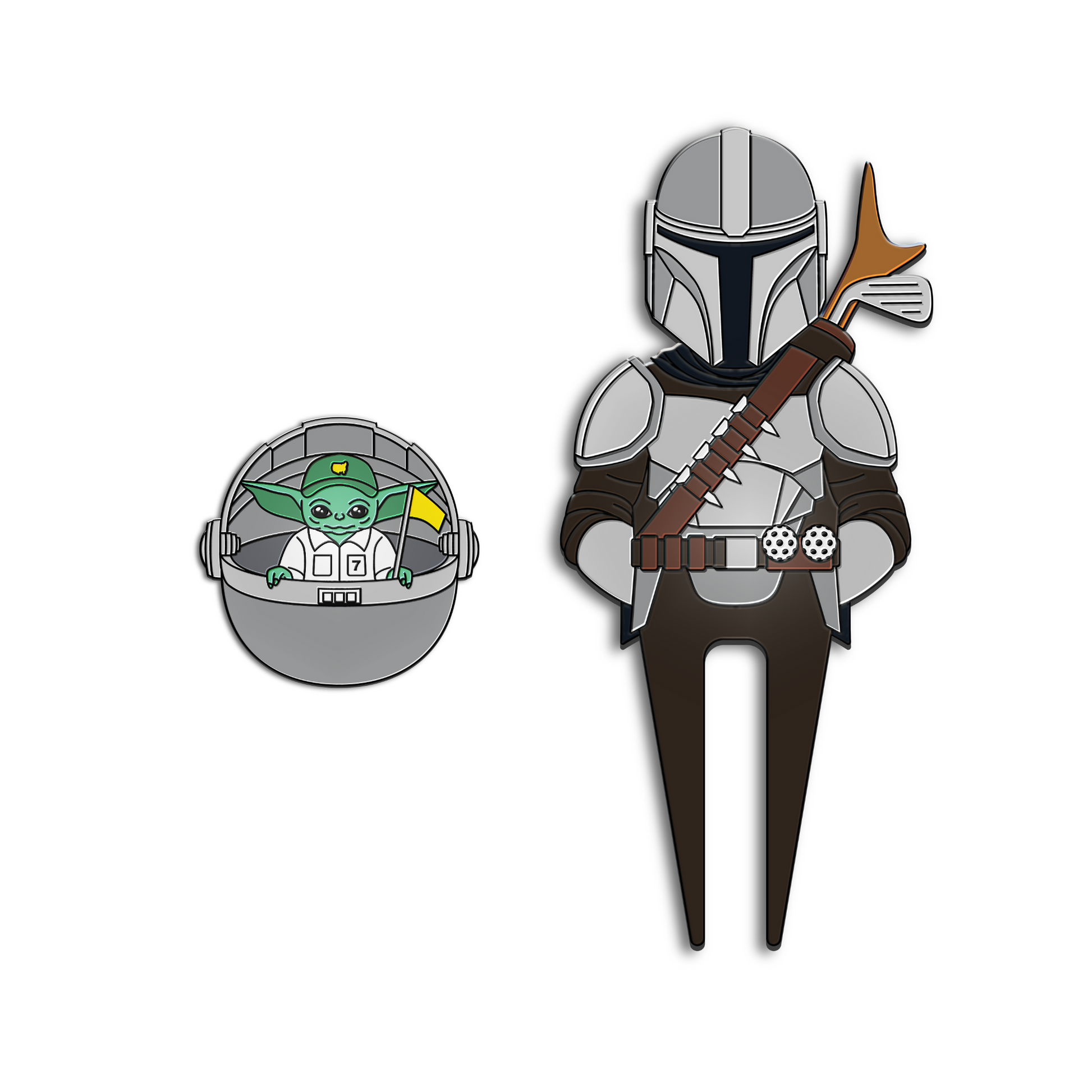 Step onto the green with a touch of movie magic with this unique Mando Divot Tool and Baby Yoda Marker Set. Perfect for golf enthusiasts and film buffs, this set is a must-have addition to your golfing gear.