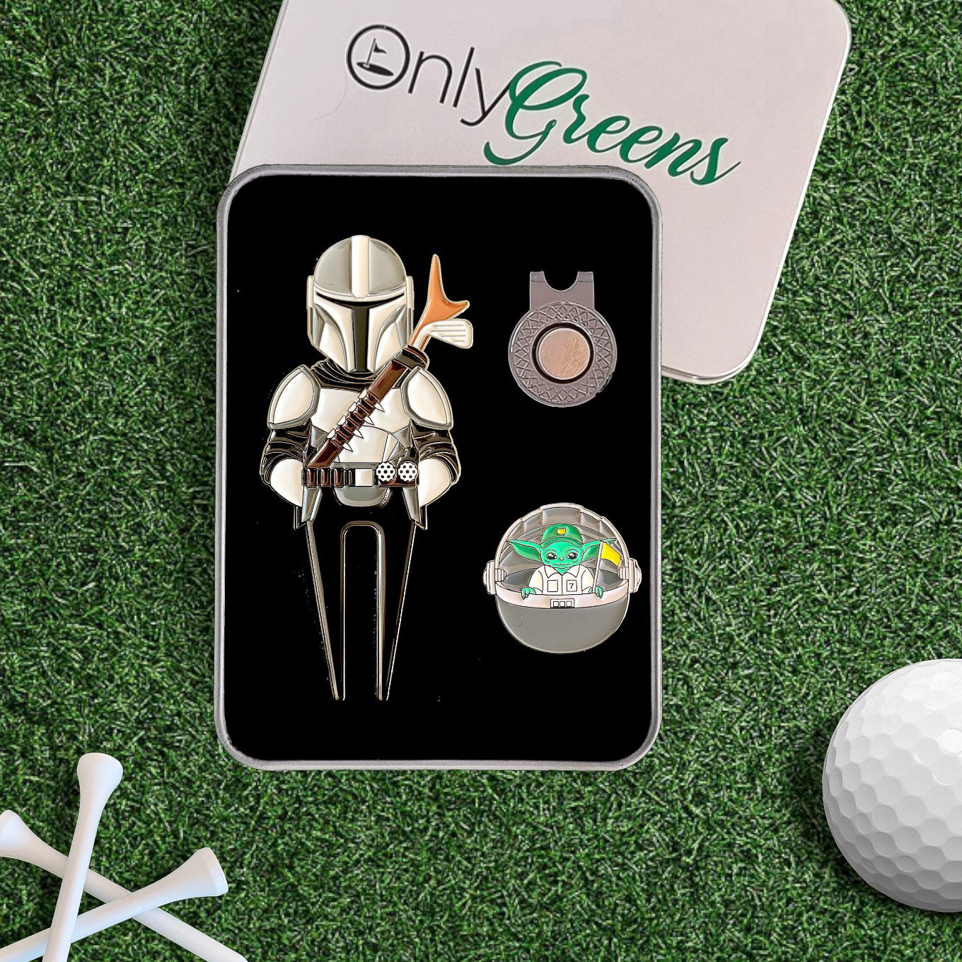 Designed with passion for golf, the set includes a specially crafted divot tool featuring an iconic galactic golfer and a distinctive ball marker. The ball marker easily attaches to and removes from the divot tool, providing both functionality and flair.