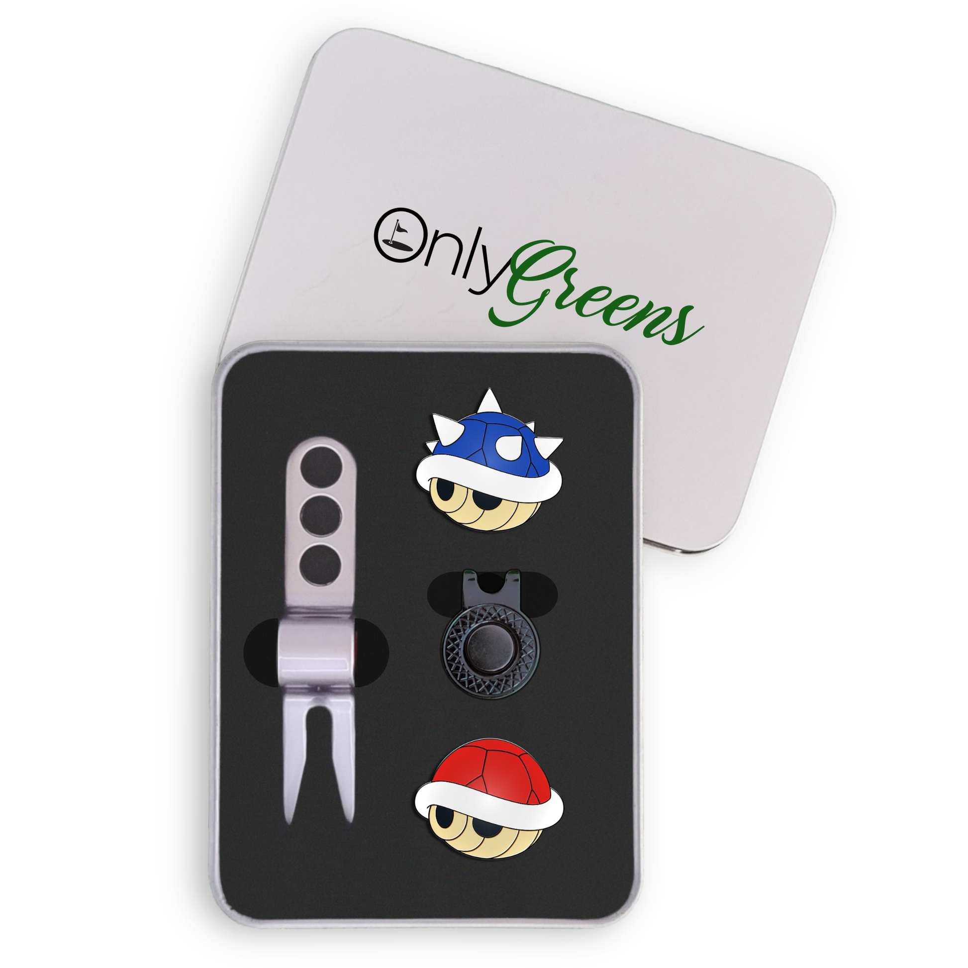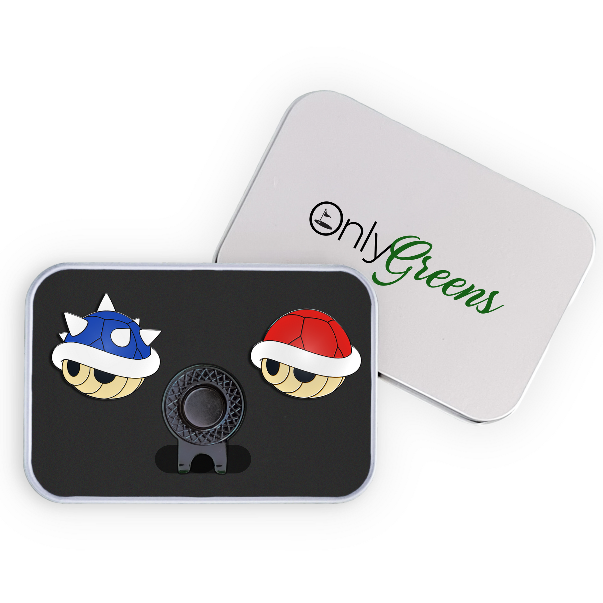 Bring a competitive edge to your round with our shell-inspired golf ball marker set. Featuring bold designs of a spiked blue shell and a classic red shell, this set adds both flair and fun to your game. Perfect for fans of iconic racing worlds and golfers who love to stand out, these markers make every putt feel like part of the race to victory!