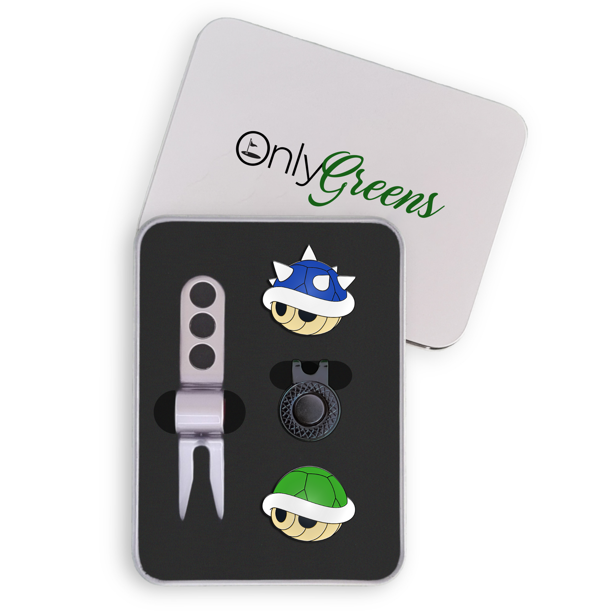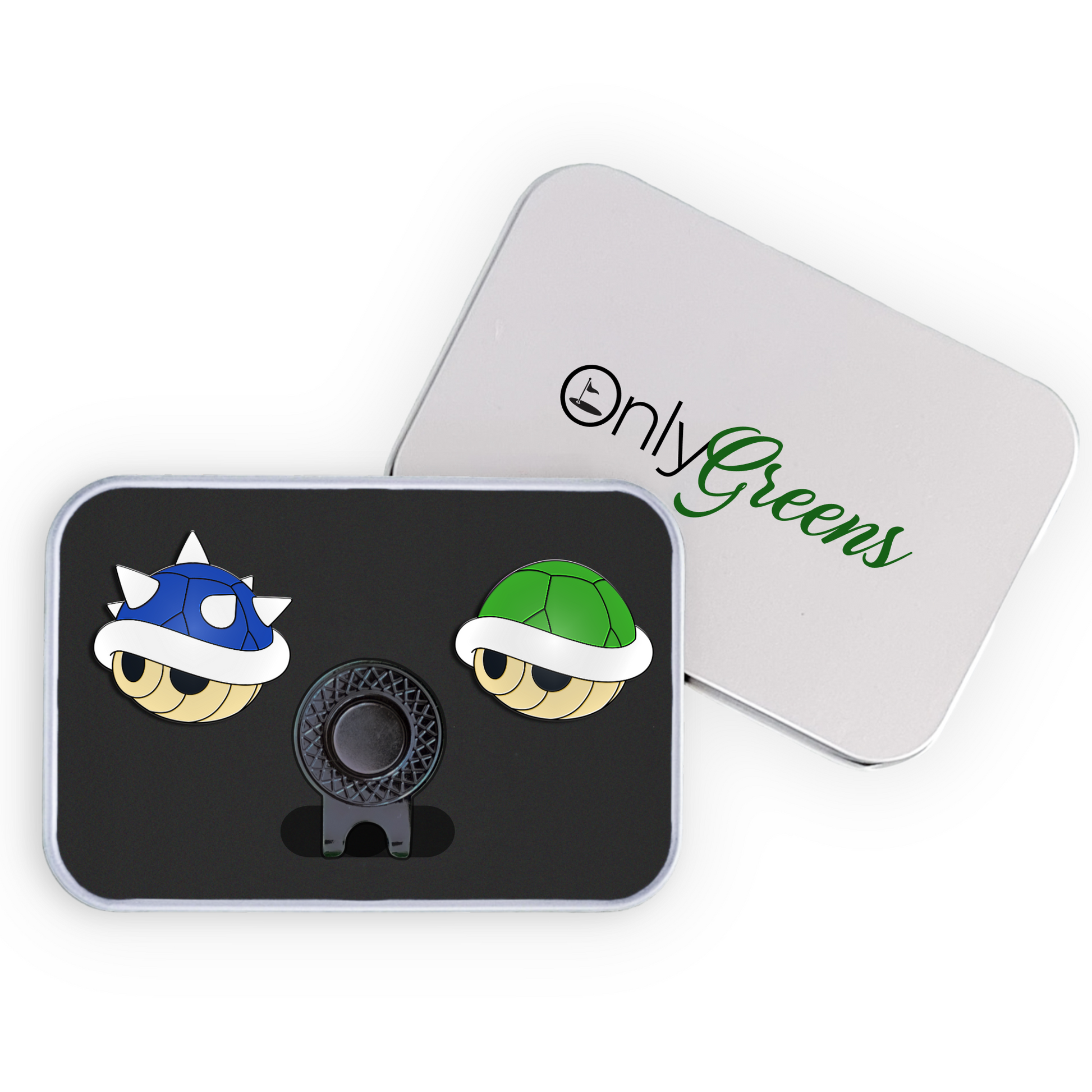 Bring a competitive edge to your round with our shell-inspired golf ball marker set. Featuring bold designs of a spiked blue shell and a classic green shell, this set adds both flair and fun to your game. Perfect for fans of iconic racing worlds and golfers who love to stand out, these markers make every putt feel like part of the race to victory!