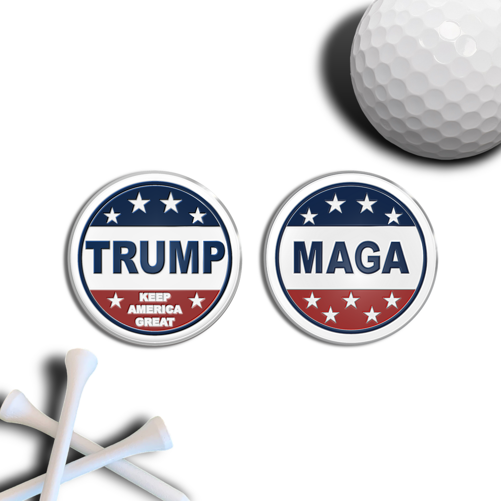 Show your pride with our Trump-inspired golf ball marker set. Featuring bold "Keep America Great" designs, this set is perfect for adding a patriotic touch to your game. A great choice for supporters and golf enthusiasts alike!